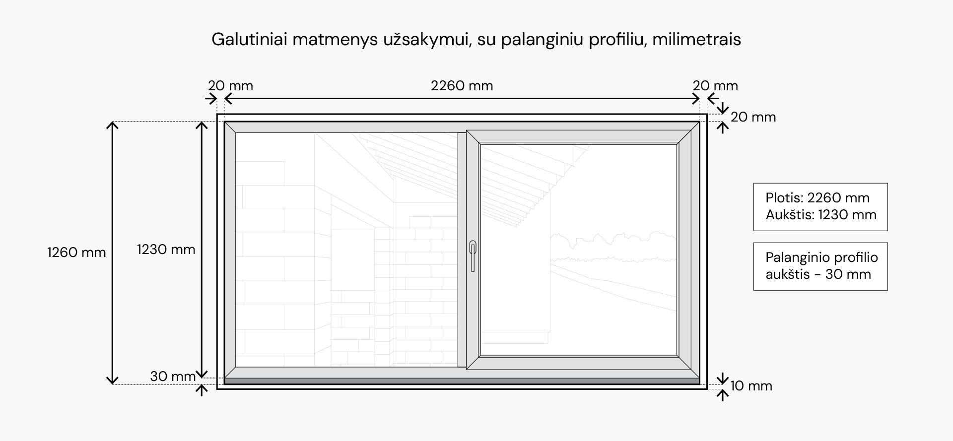 Galutiniai matmenys užsakymui (be palangės profilio)