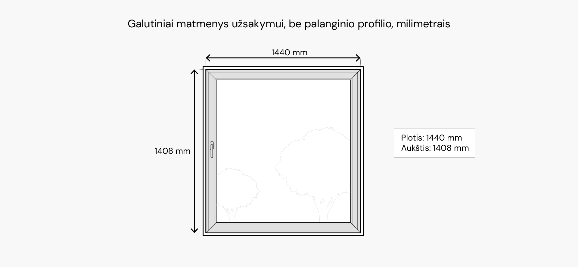 Pagal pavyzdį, užsakomo lango plotis – 1440 mm, o aukštis – 1408 mm.