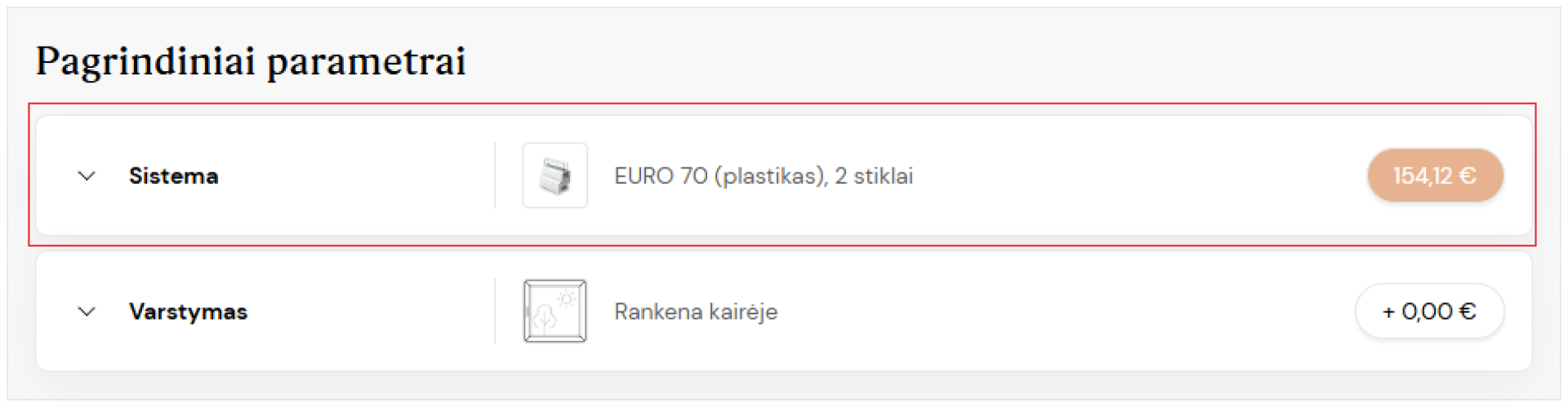 Pasirinkti pageidaujamą sistemą galite kiekvieno produkto vidiniame puslapyje. Tai – pats pirmasis pasirinkimas pagrindinių parametrų dalyje: