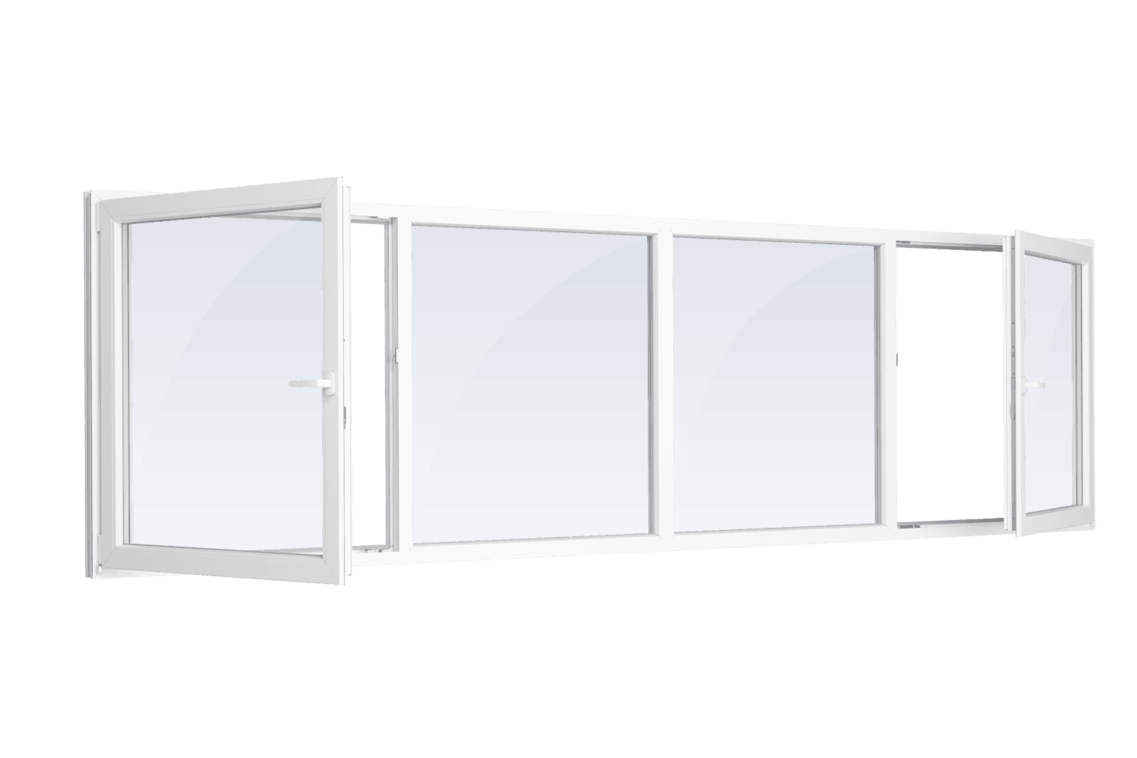 Keturių dalių langas su dviejomis varčiomis šonuose